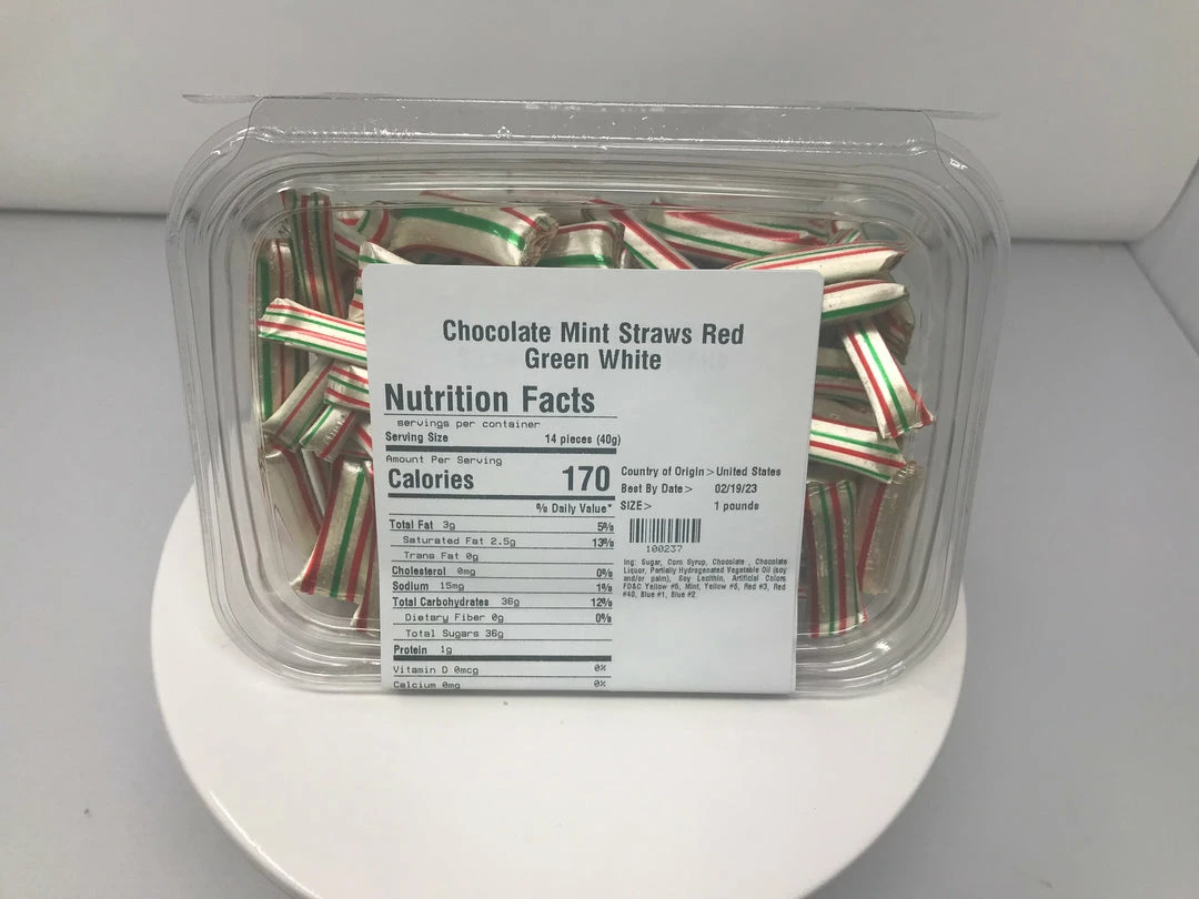 Old Fashion Chocolate Mint Filled Straws. Our best tasting chocolate straw!! A crispy satin stick stuffed with a generous amount of mint-flavored chocolate. You will not be disappointed!! This listing is for 2 bulk 1 pound bags of Old Fashion Chocolate Mint Filled Straws.