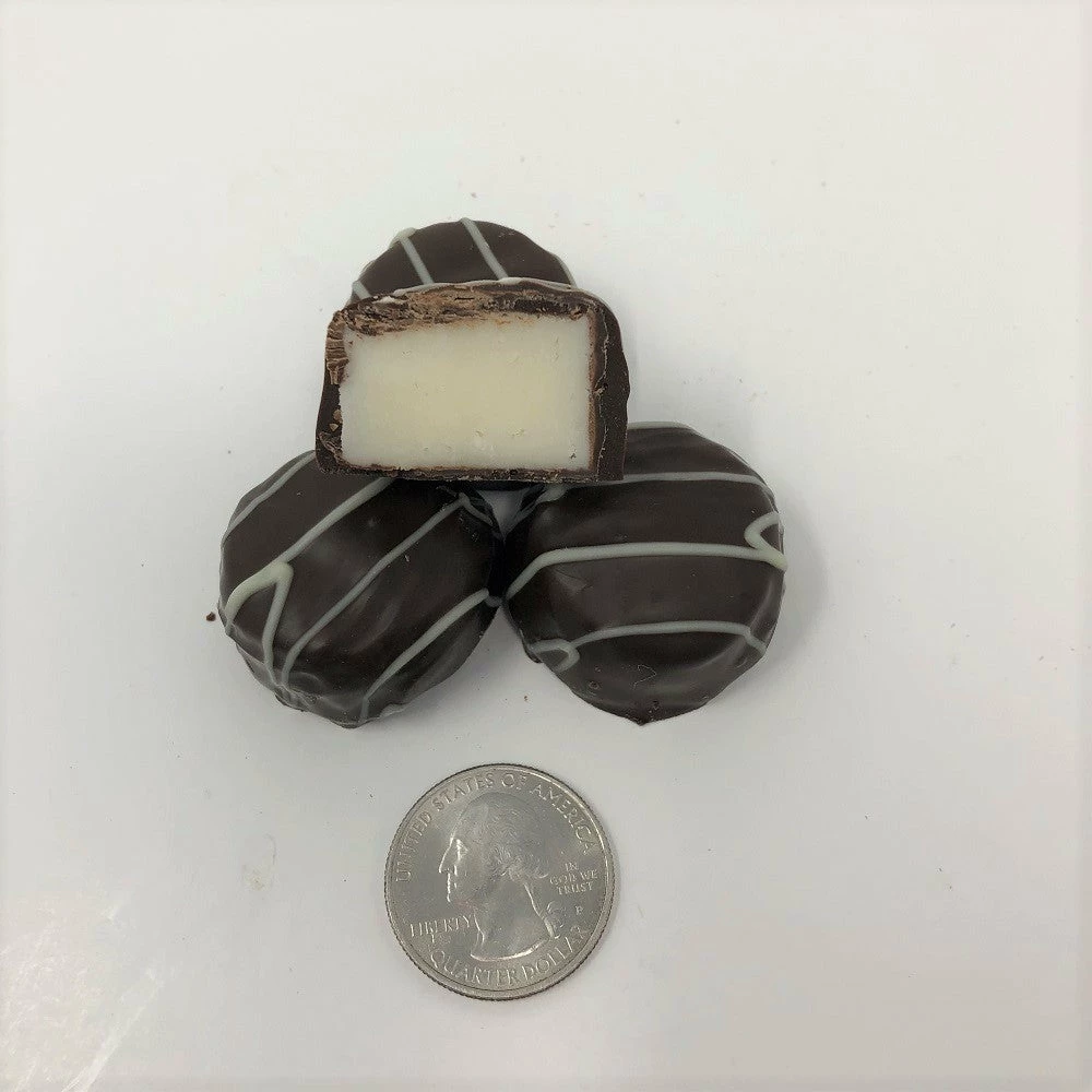 Dark Chocolate Vanilla Butter Creams with a White Chocolate String on Top. A Smooth, Delicious Vanilla Butter Cream covered with Dark Chocolate!! This listing is for a 1 pound box of gourmet dark chocolate vanilla butter creams.