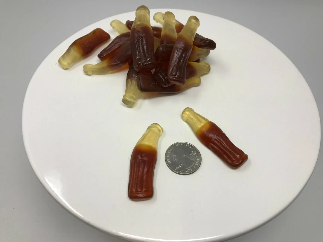 Gummi Cola Bottles. A cola-flavored gummi candy that resembles a soda bottle. This listing is for a bulk 2 pound bag of Gummi Cola Bottles.