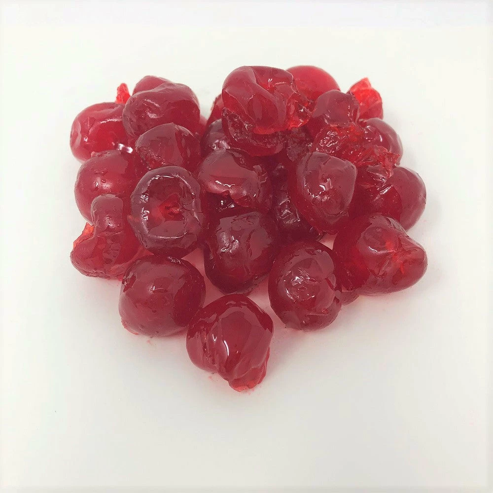 Candied Red Whole Cherries. A delicious, sweet glazed fruit for your Fruit Cake or baked goods recipes. This listing is for a 1 pound container of Paradise Candied Red Whole Cherries.