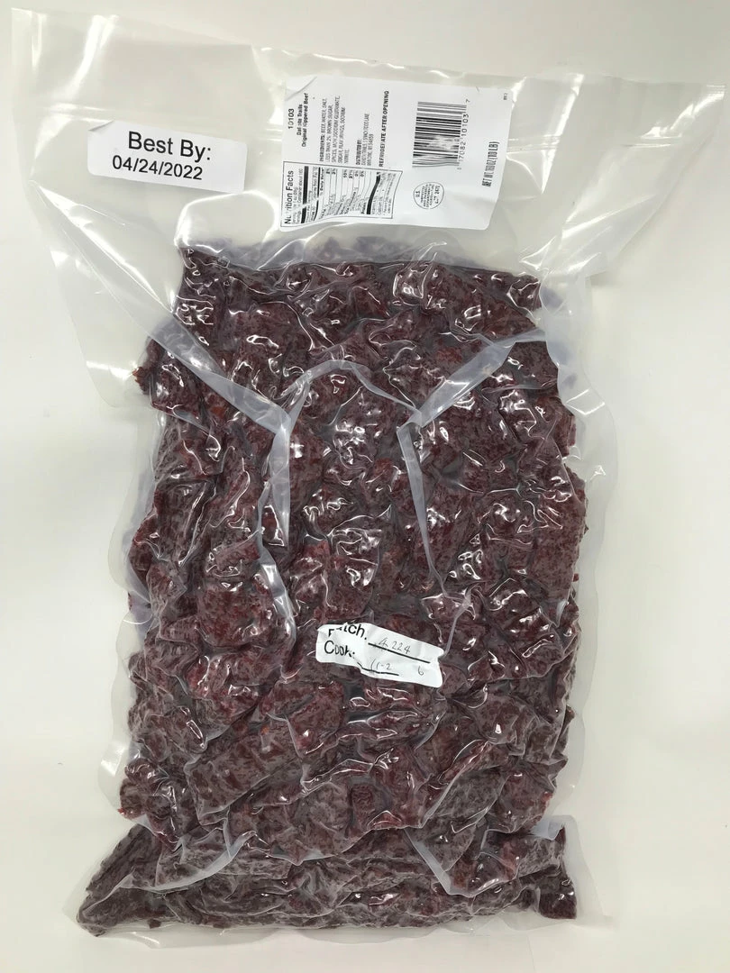 Original Flavor Moist Kippered Beef Jerky. Fresh, Moist, and Tender Beef Jerky Pieces typically 1 to 4 inches long. This listing is for a bulk 10 pound vacuum sealed bag of Original Flavor Kippered Beef Jerky. Best By Date is January 2023. Very Important…After opening the 10 pound bag, we strongly recommend you separate the Jerky into portions and vacuum seal each portion. If you do not have a vacuum sealer, you can also freeze the portions.