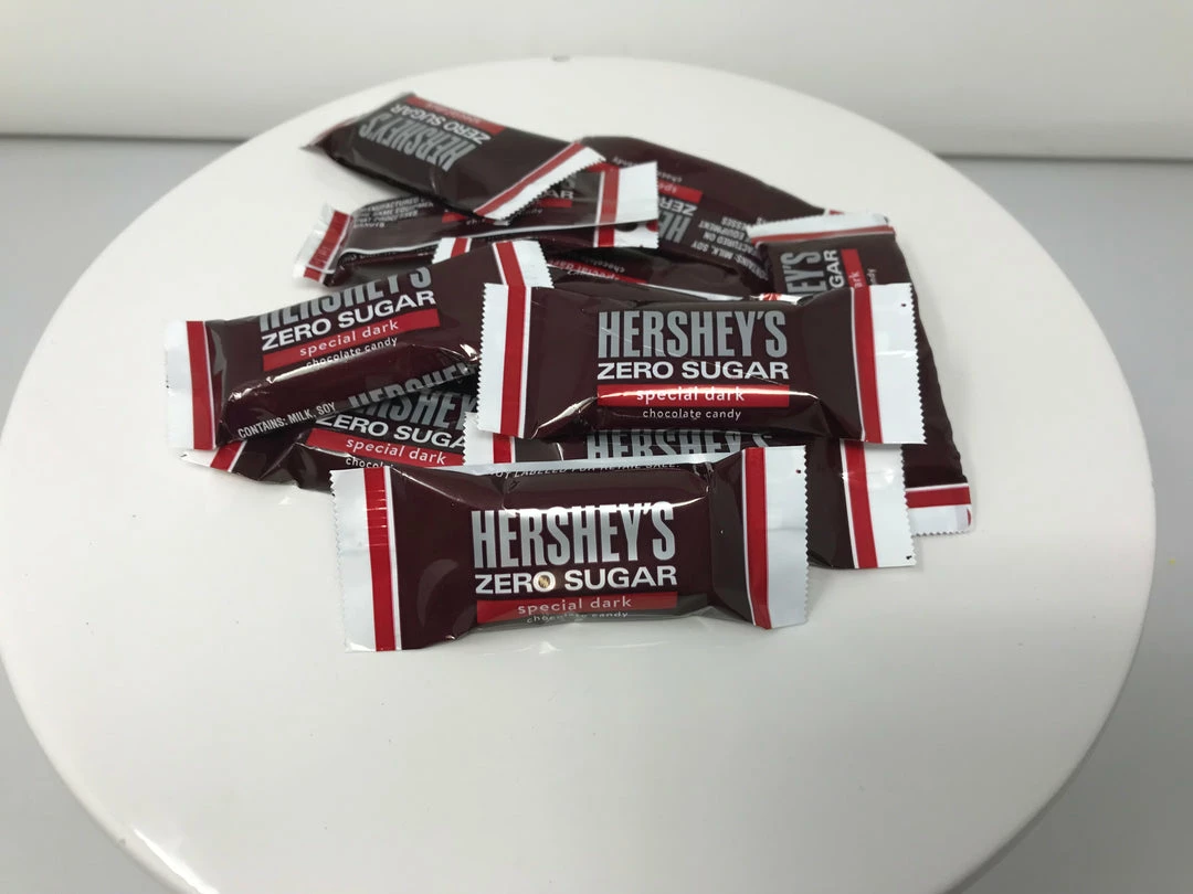 SPECIAL BUY!! Zero Sugar Hershey Bars Special Dark. Snack Size Sugar Free Dark Chocolate Hershey Bars. Fresh, Delicious, and Sugar Free!! This listing is for a bulk 5 pound bag of Zero Sugar Hershey Bars Special Dark.