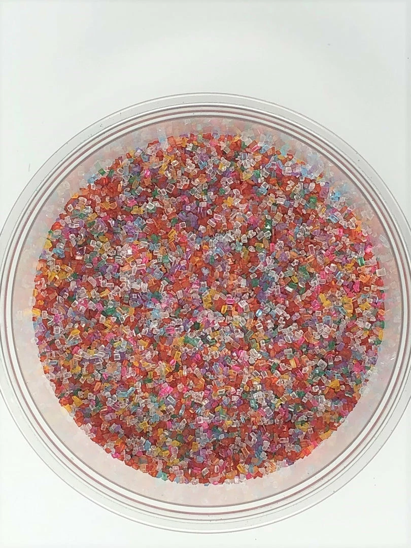 Rainbow Multi-colored Gourmet Sugar. Gourmet sugar is courser than the sanding sugar. The perfect topping for your cookies, cupcakes, ice cream, or any other dessert! This listing is for a bulk 1 pound package of rainbow gourmet sugar.