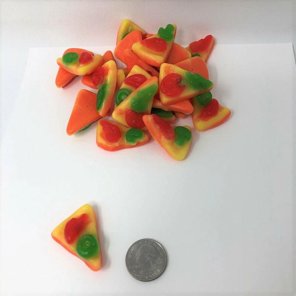 Gummi Pizza Slices. A soft, fruit-flavored gummi pizza slice…a unique and fun candy. This listing is for 2 bulk 2.2 pound bags of gummi pizza slices.